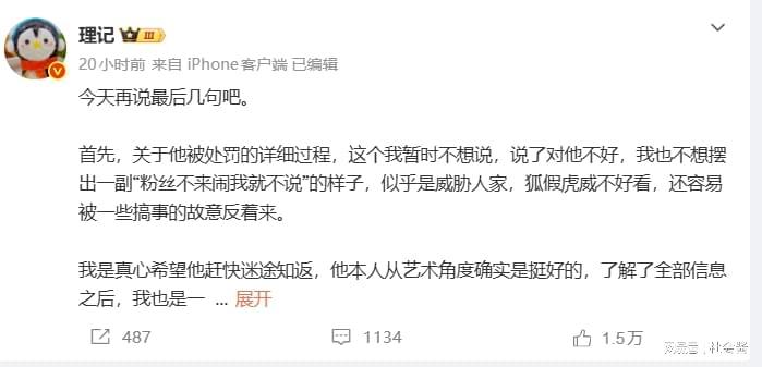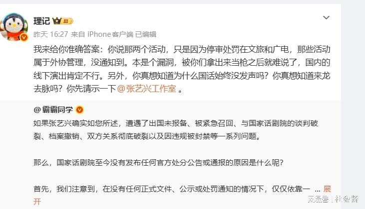 理记的爆料已经很详细了,把前因后果都说清楚了。还把张艺兴工作室的声明置顶,说自己说的才是对的,可以和他们硬刚。但在粉丝眼里,理记说的话就是造谣,因为他们在国家话剧院官网,还能看到张艺兴的宣传,并且在个别媒体上,还能看到和张艺兴有关的正面话题。并且解释,张艺兴之所以没有在过年期间活动,是因为鼻炎做手术。